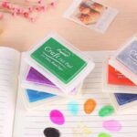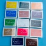 Different colors of ink pads for stamping on fabric, wood, paper.